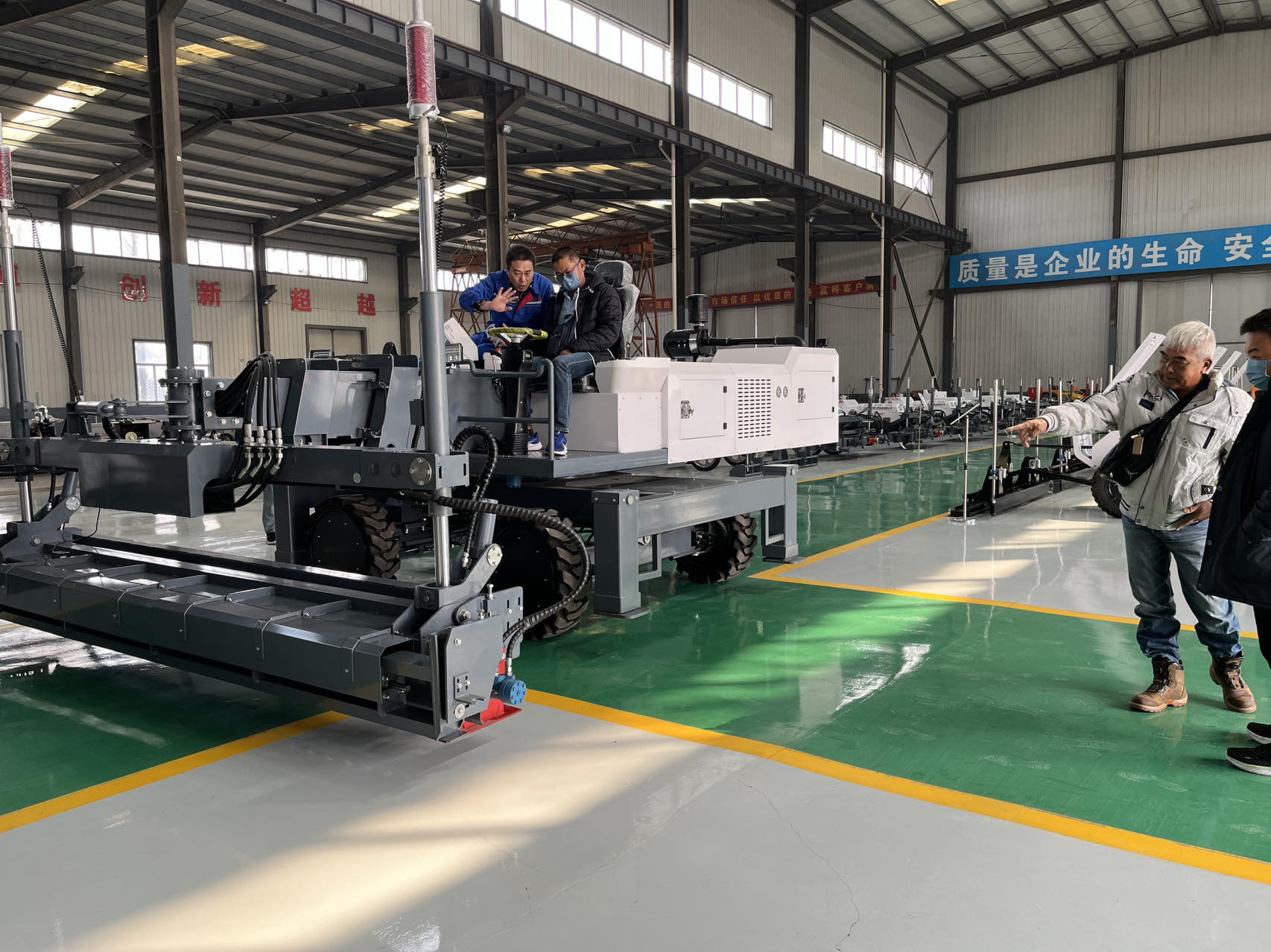 In order to allow customers to fully understand the production technology, working principle, and construction process of the laser leveling machine, under the leadership of our company's technical staff, the customer conducted actual operations on the laser leveling machine.